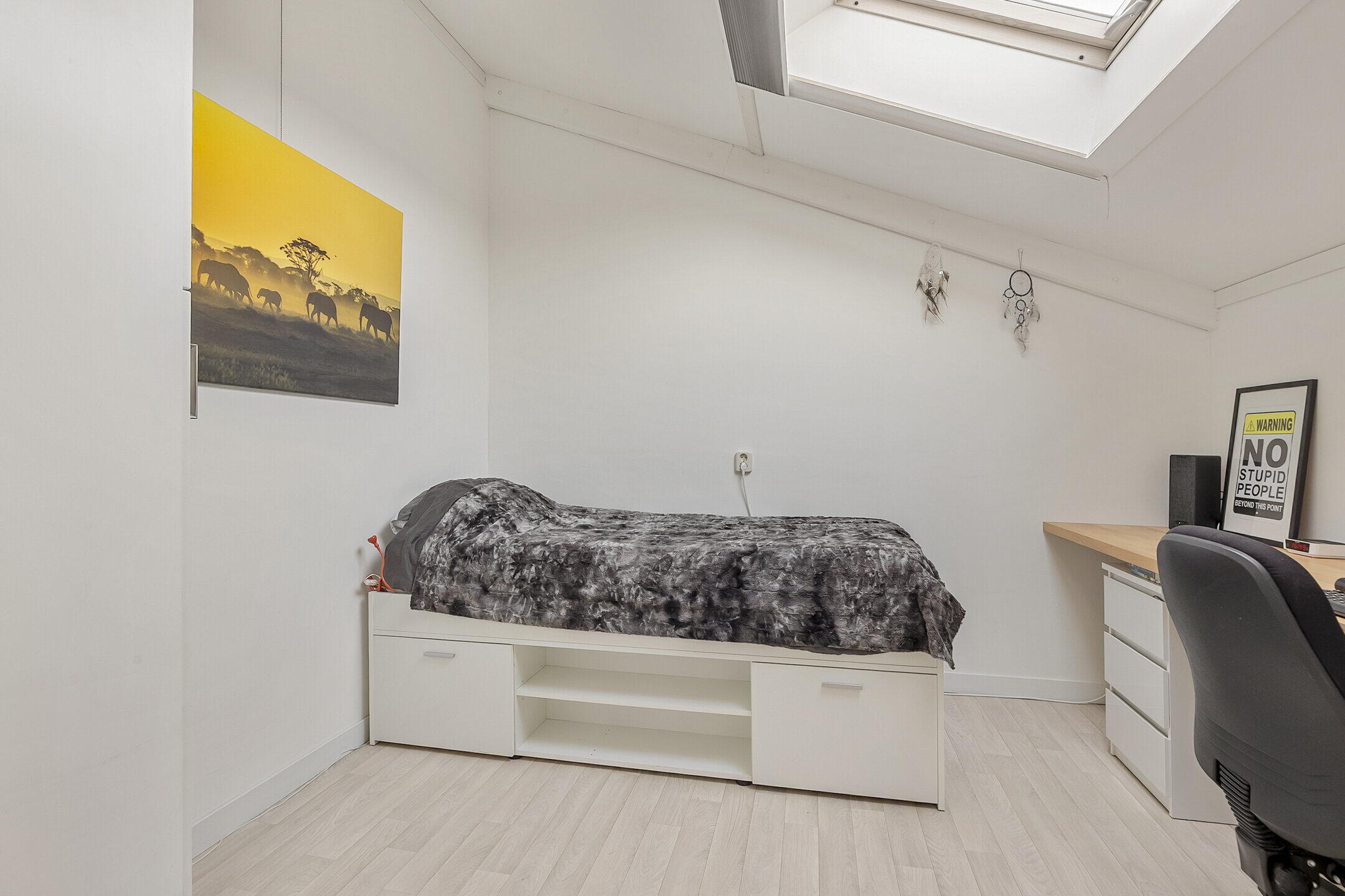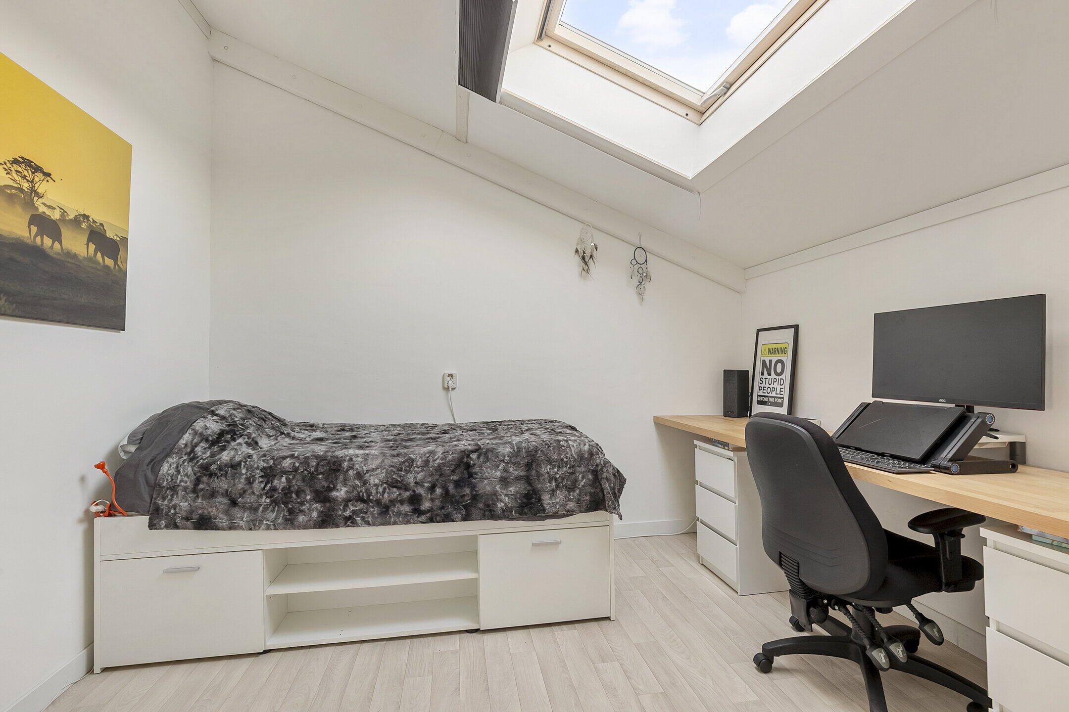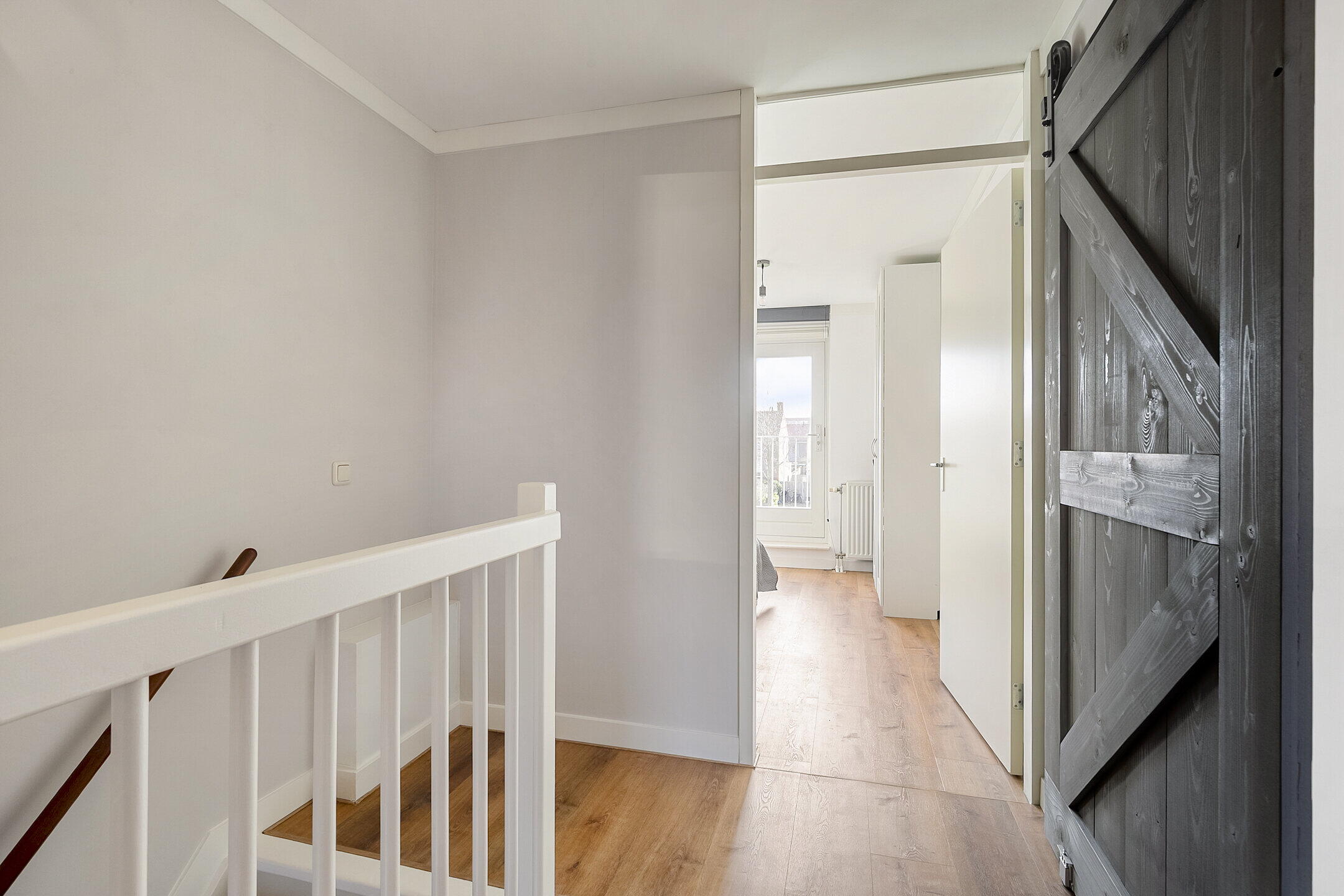 Via een vaste trap bereik je de tweede verdieping met een praktische indeling. Hier bevinden zich drie slaapkamers, bergruimte en diverse vaste kasten. Op de overloop bevinden zich tevens de wasruimte en de opstelling van de cv-combiketel (2017).