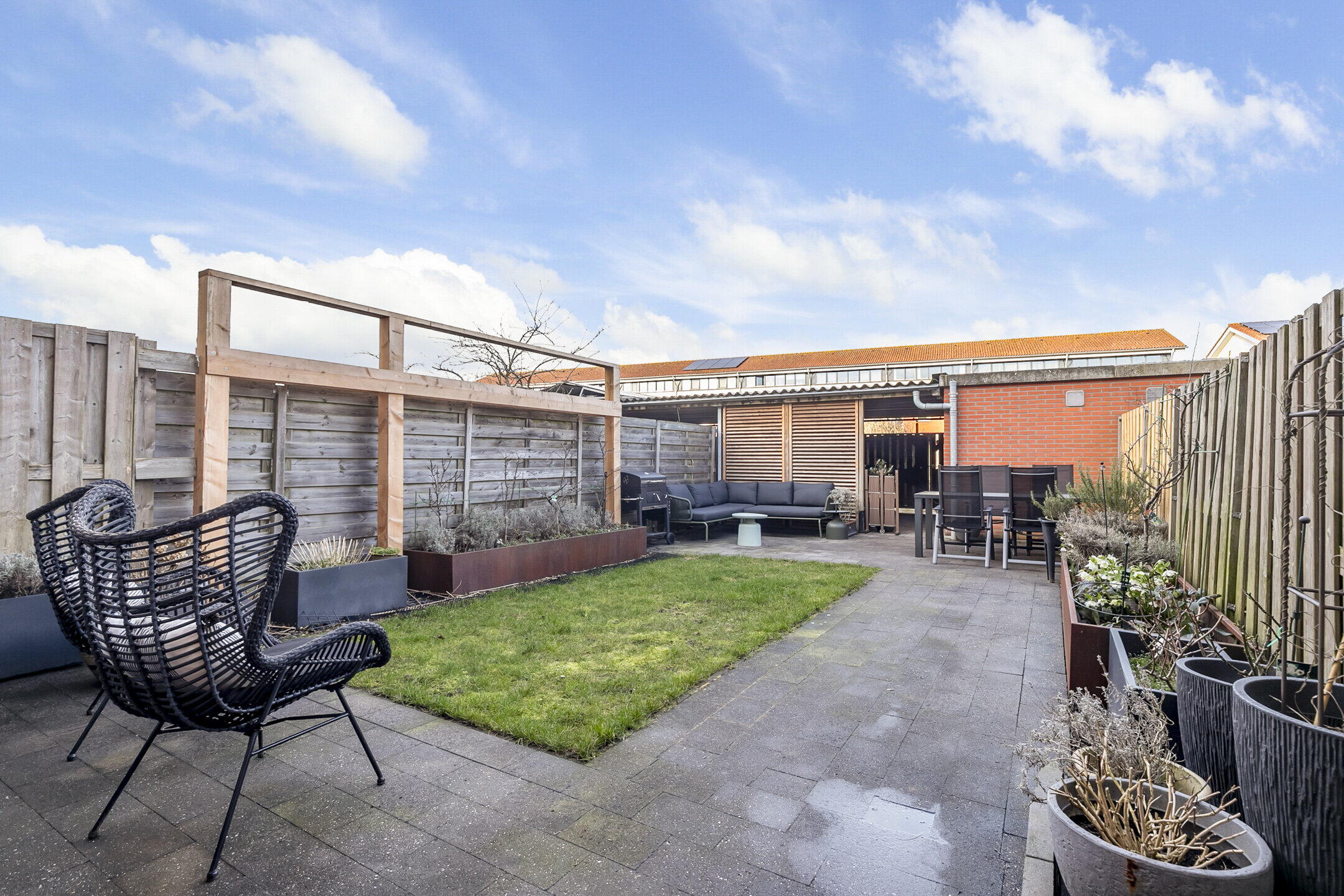• Zonnige achtertuin met meerdere terrassen;